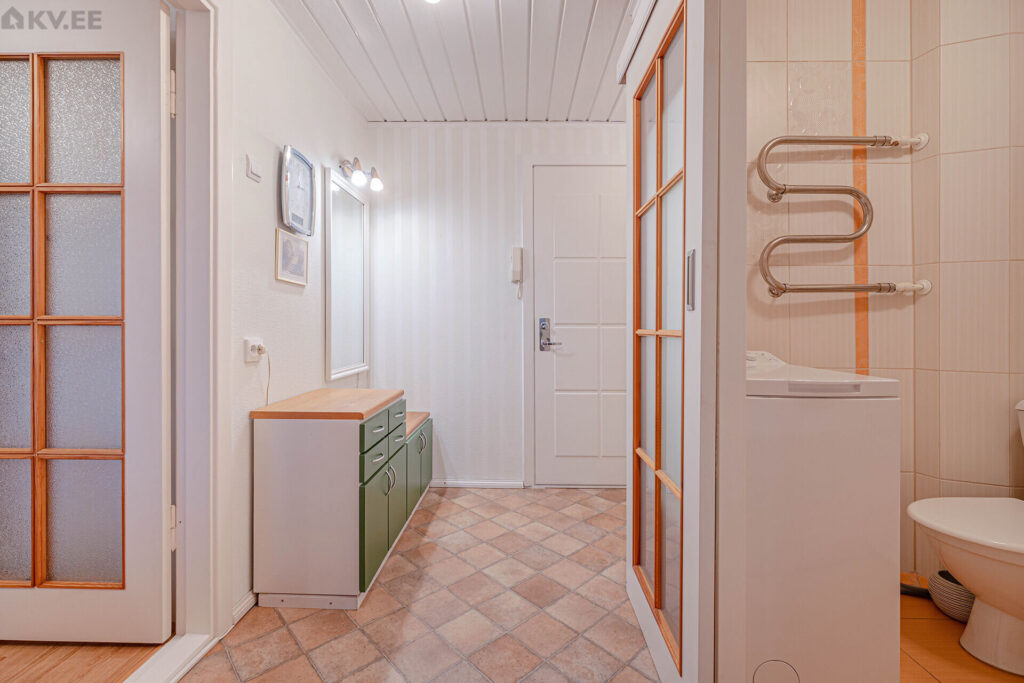 Seinte viimistlemisel on kasutatud enam jaolt värvitavat tapeeti. Wc/ vannitoa seina katab keraamiline plaat. Toa põrandat katab heas korras laminaatparkett, wc/pesuruumi põrandal on keraamiline plaat. Esikus ning köögis on kasutusel PVC kate.