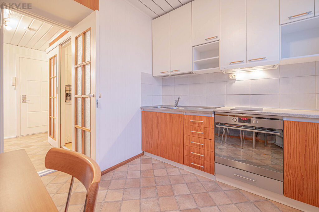 Köögist leiate köögimööbli, mis sisaldab endas elektripliiti/ ahju, kubu ja külmkappi. Esikus ja magamistoas on liugustega garderoobikapid. Vannitoas saab nautida vanni mõnusid.