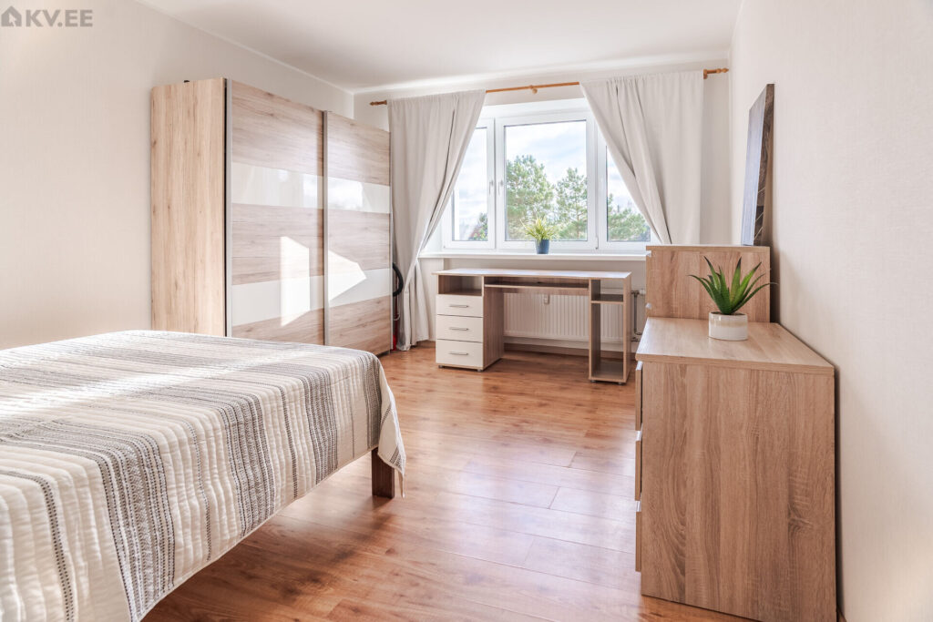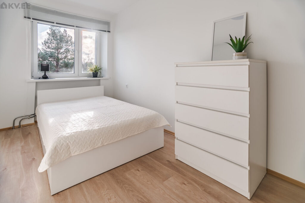 Viiekordse elamu viimasel korrusel asuva uueväärse, väga valgusküllase korteri koosseisu kuuluvad esik, avatud köögiga elutuba, kaks eraldi asetsevat magamistuba ning duširuum koos tualetiga. Korter antakse üürile koos korteris oleva mööbli ja tehnikaga. Akendest avanevad vaated kolmes suunas. Elamus on keskküte, korteris seintel reguleeritavad radiaatorid, pesuruumis on elektriline põrandaküte.