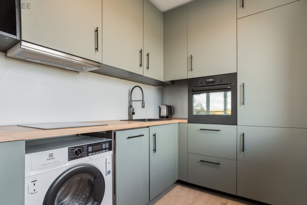 Akendel on pimendavad kardinad. Kõik laevalgustid on puldiga juhitavad. Köögimööbel sisaldab endas indukstisoonpliiti, ahju, kubu, nõudepesumasinat, pesumasinat (kuivatiga) ja külmkappi.