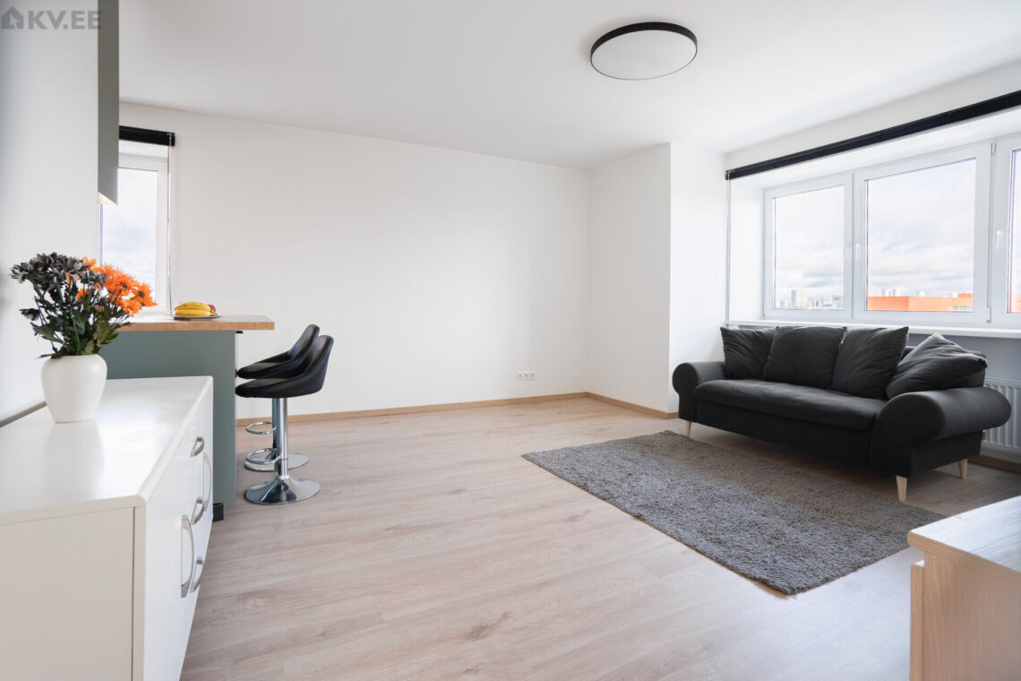 Viiekordse elamu viimasel korrusel asuva uueväärse, väga valgusküllase korteri koosseisu kuuluvad esik, avatud köögiga elutuba, kaks eraldi asetsevat magamistuba ning duširuum koos tualetiga. Korter antakse üürile koos korteris oleva mööbli ja tehnikaga. Akendest avanevad vaated kolmes suunas. Elamus on keskküte, korteris seintel reguleeritavad radiaatorid, pesuruumis on elektriline põrandaküte.
